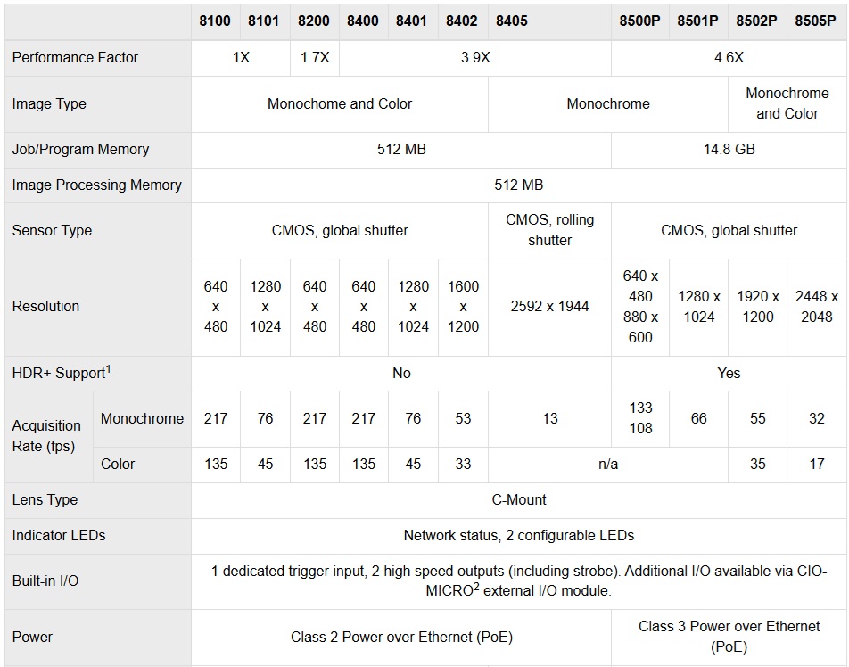 ด้วยขนาดเพียง 35 มม. x 32 มม. x 76 มม. ทุกรุ่นในซีรีส์ In-Sight 8000 มาพร้อมระบบจ่ายไฟผ่านอีเทอร์เน็ต (POE)