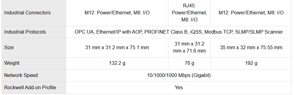 ระบบวิชั่นเหล่านี้รองรับ Gigabit Ethernet สำหรับการสื่อสารความเร็วสูง